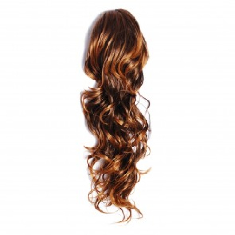 Long Length Synthetic Curled Ponytail hair extension with a drawstring attachment.