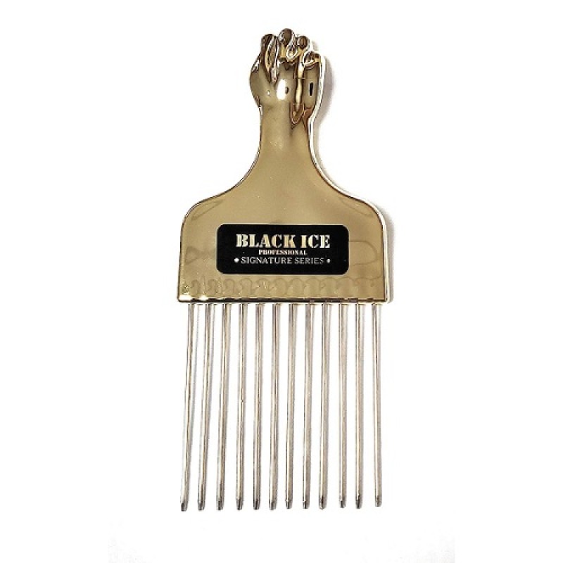 Black Ice Gold Handle Afro Metal Pik Comb