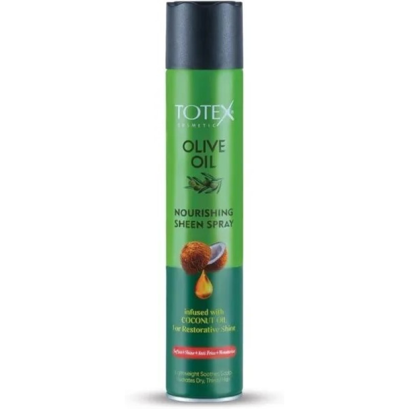 Totex Olive Oil Nourishing Sheen Spray infused with coconut oil for restorative shine