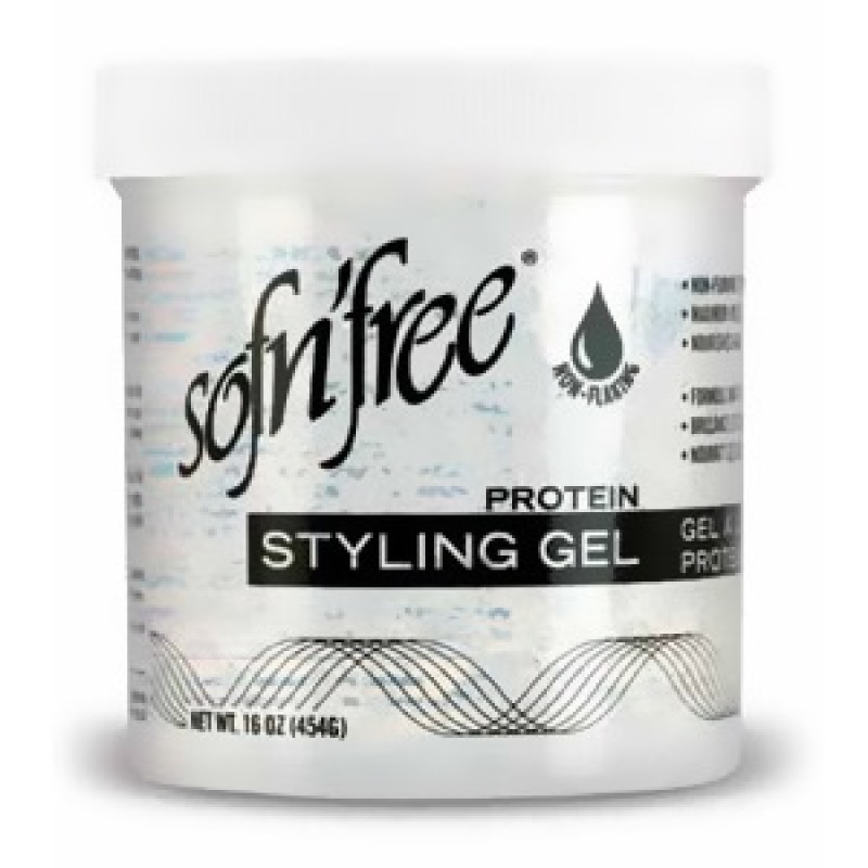 Sofn'Free Protein Styling Gel Maximum Hold & Sheen is designed for firm styling control when setting wrapping or moulding.