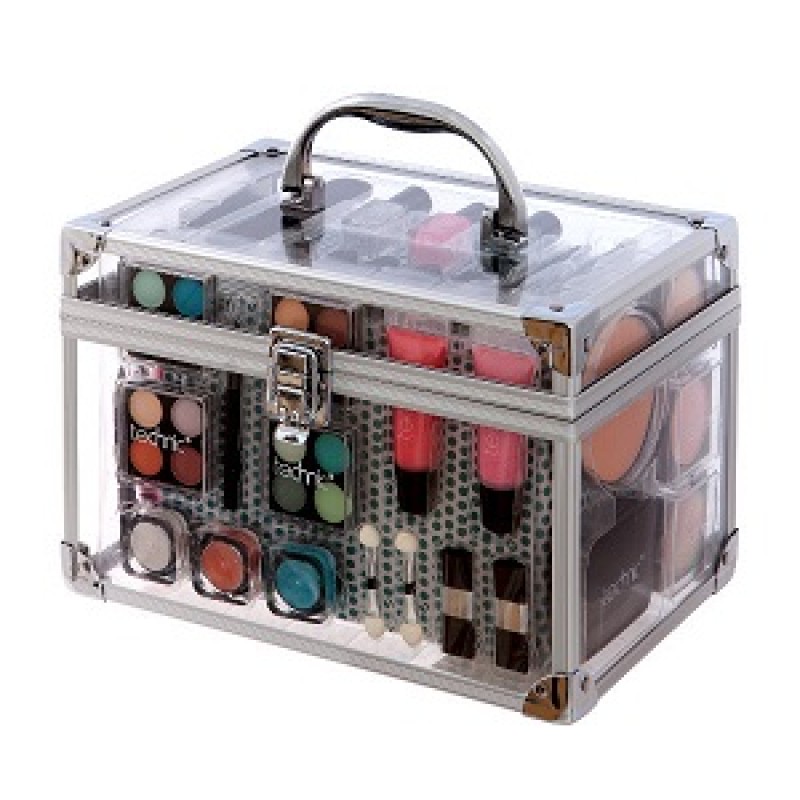 Contents: 1x Re-Usable Case, 3x Lipsticks, 2x Lipglosses, 3x Nail Varnishes, 3x Cream Eyeshadows, 4x Eyeshadow Compacts, 3x Blusher, 2x Eyeliner Pencils, 2x Lipliner Pencils, 1x Face Powder, 1x Compact Holder, 2x Foam Applicators, 2x Blusher Brushes, 2x Orange Sticks, 1x Cuticle Pusher, 1x Emery Board, 2x Toe Dividers, 1x Pencil Sharpener & 1x Mirror.