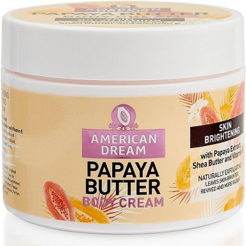 AMERICAN DREAM PAPAYA BUTTER BODY CREAM with Vitamin E is a non-greasy cream that softens and moisturises to leave dry & extra dry skin feeling silky smooth and hydrated. Containing oil of lemon to promote a brightening effect and Vitamin E to repair & protect skin, this rich cocoa butter is also ideal at smoothing away blemishes and pregnancy stretch marks